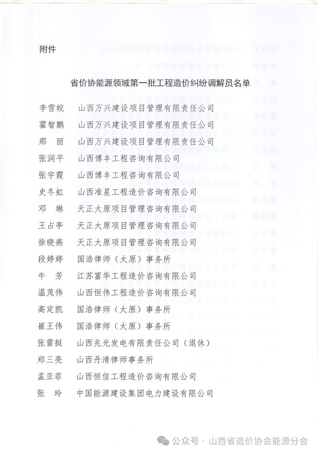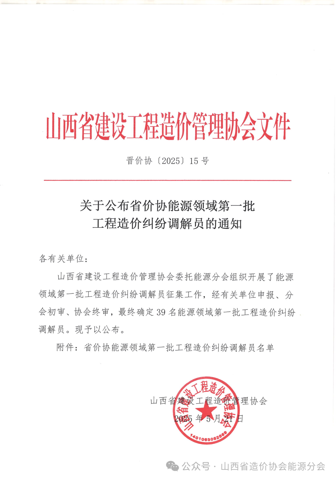 关于公布省价协能源领域第一批工程造价纠纷调解员的通知